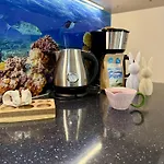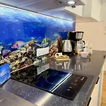 - ❓Czy w tym apartamencie znajduje się kuchnia do użytku gości?Tak, ten apartament wyposażony jest w aneks kuchenny i oferuje czajnik elektryczny, lodówkę i płytę grzejną.